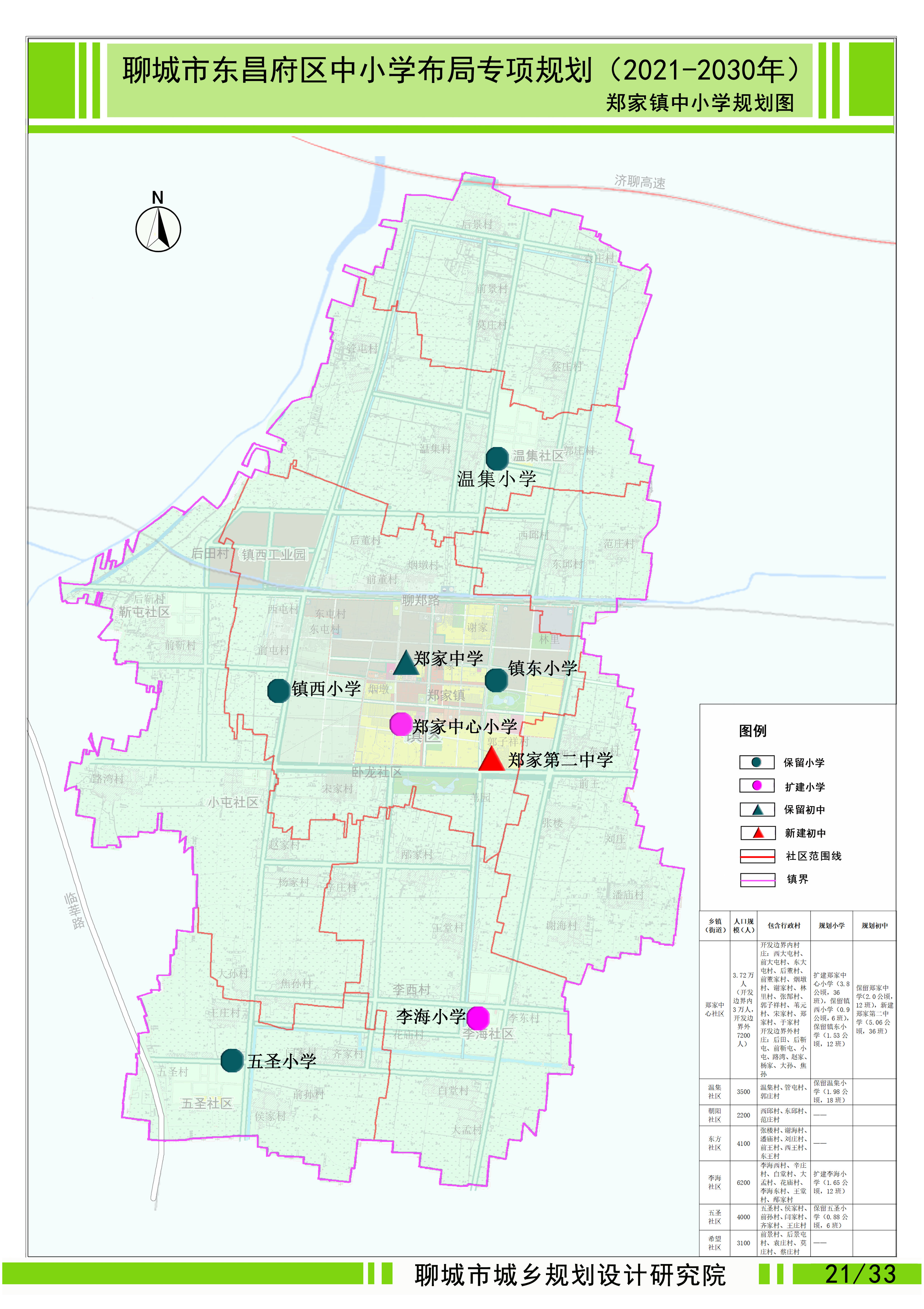 东昌府区中小学布局专项规划(2021-2030) 郑家镇中小学规划图