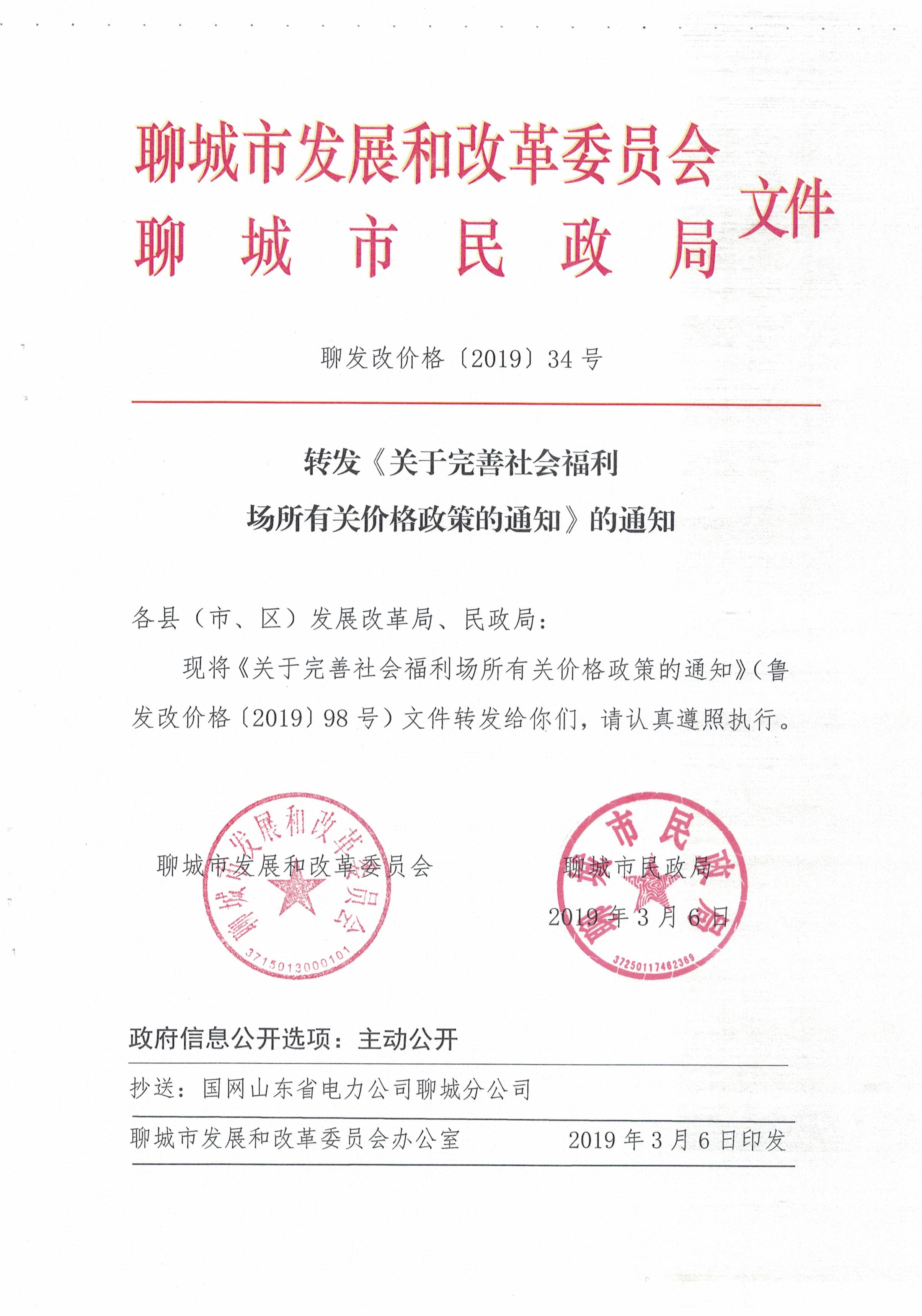 转发《关于完善社会福利场所有关价格政策的通知》的通知