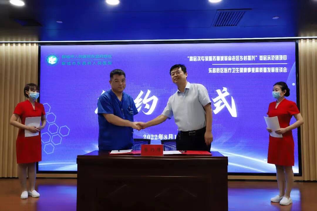 8月11号,“2022年高层次专家服务聊城革命老区乡村振兴”基层示范团项目”东昌府区医疗卫生健康事业高质量发展座谈会举行。中国医学科学院北京协和医院医务处处长常青、中国人民解放军总医院肝胆胰外科赵国栋、等七位国家级学科带头人、东昌府区副区长赵亚秋出席活动并致辞。